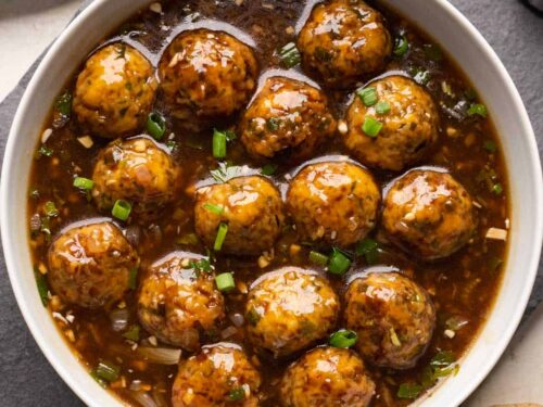 Chicken Manchow is a dark brown Chinese soup. Chicken, mushrooms, carrots and other veggies simmered in mild flavors.
